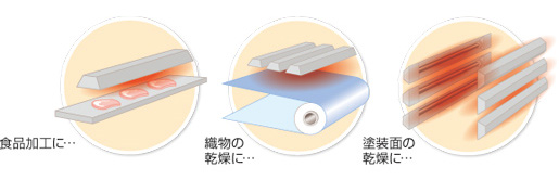 パイプ状遠赤外線ヒータ、パネル状遠赤外線ヒータなど。